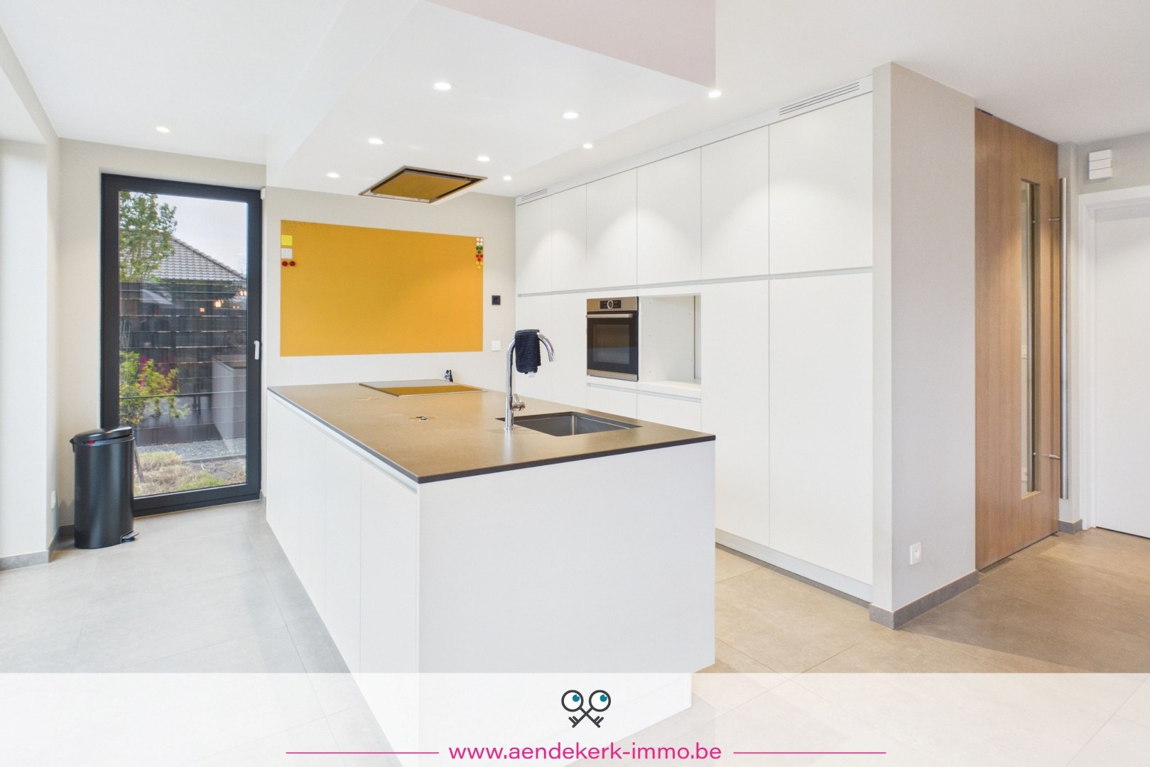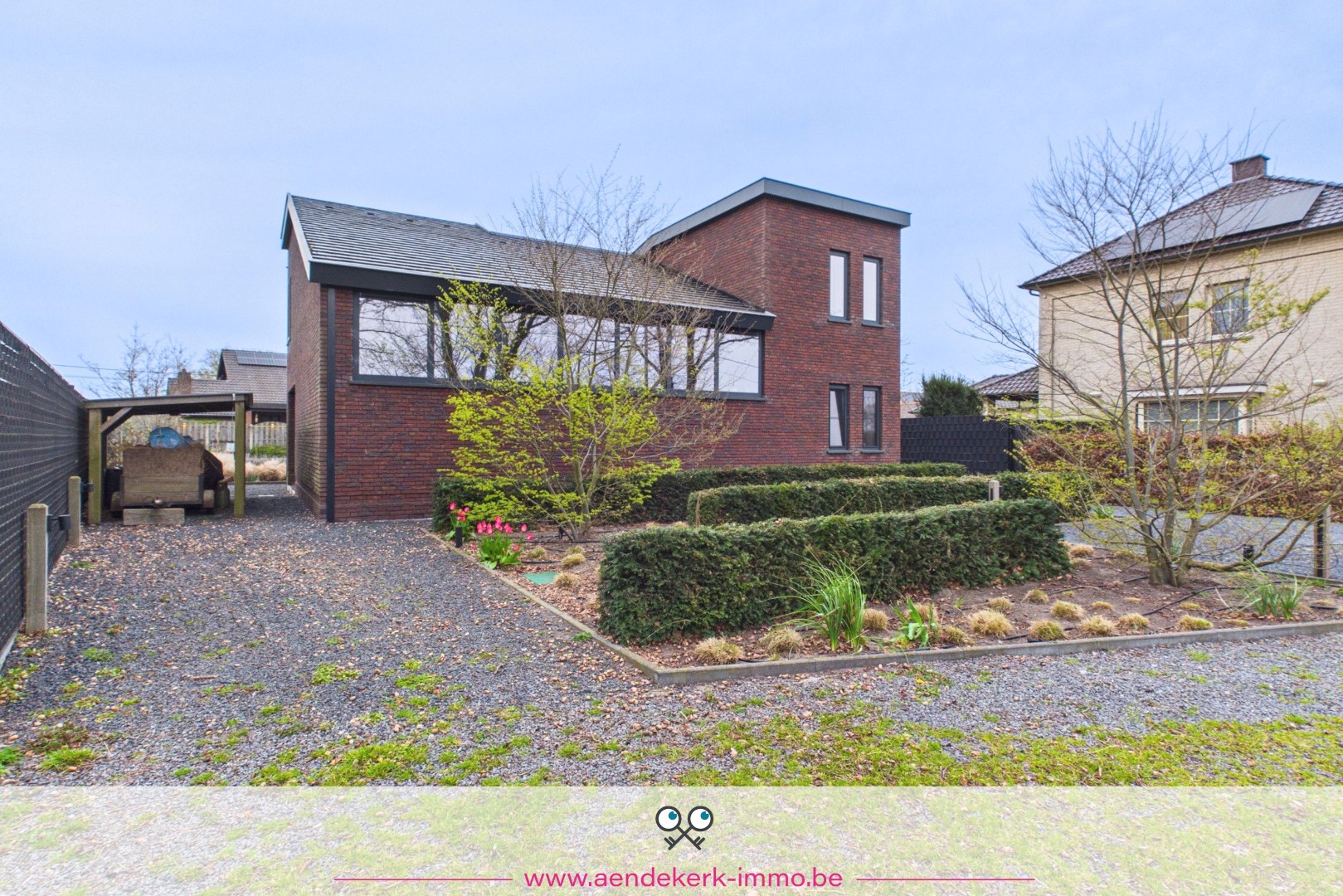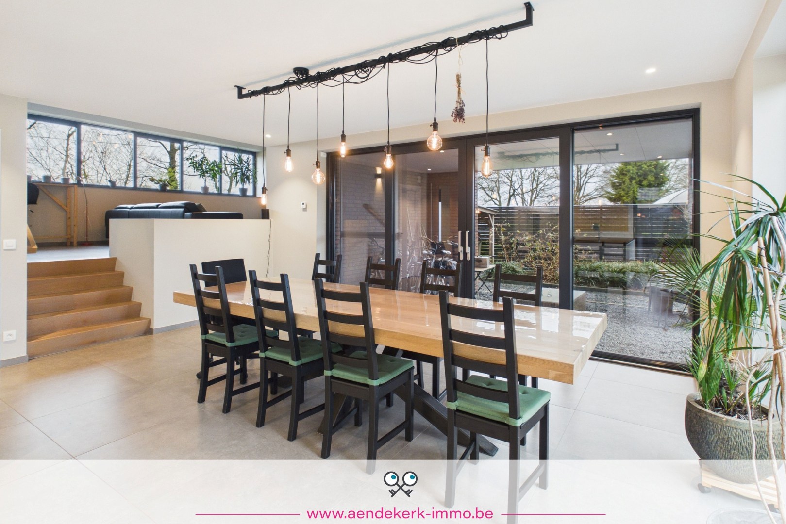 De woning zelf is opgebouwd als split-level en voelt daardoor open en speels aan. De leefruimte sluit mooi aan op de keuken en eethoek, met directe toegang tot het overdekt terras. Een aangename plek waar binnen en buiten naadloos in elkaar overlopen.