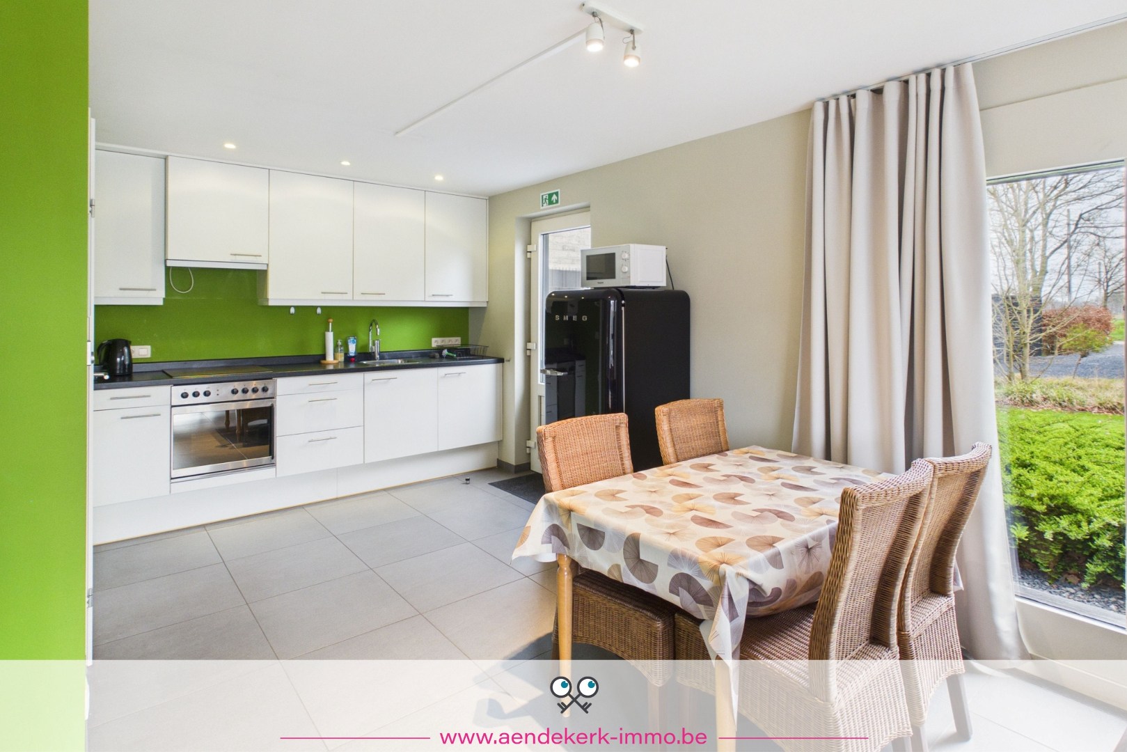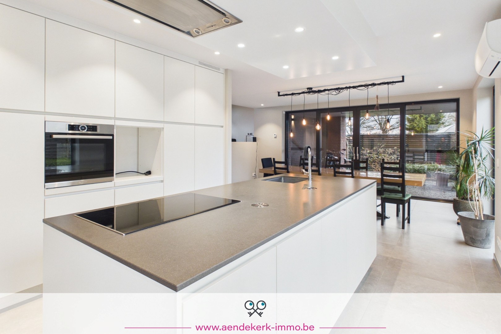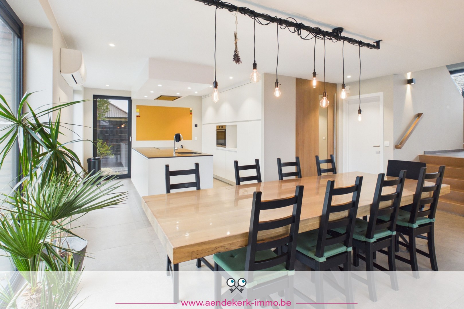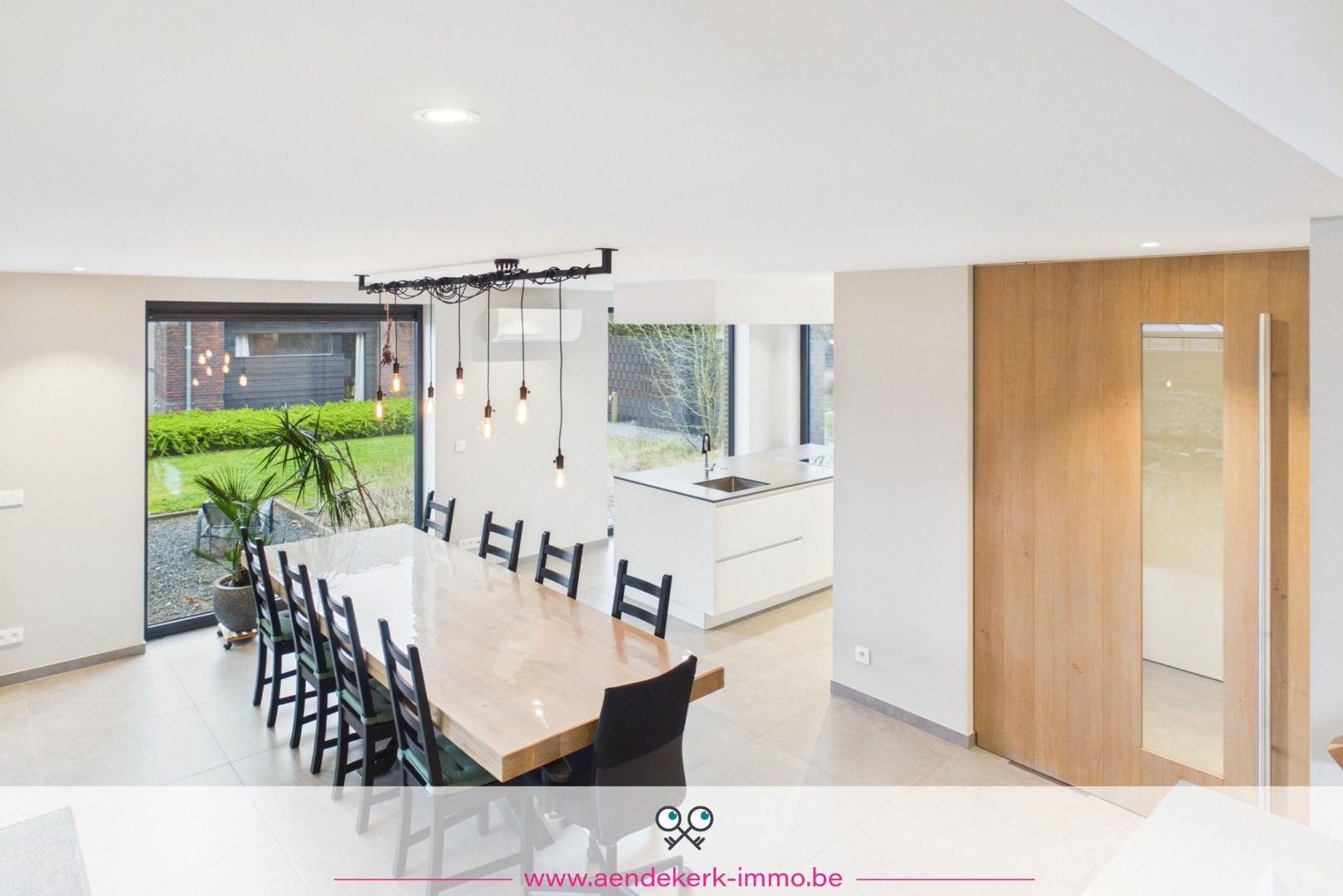 De woning zelf is opgebouwd als split-level en voelt daardoor open en speels aan. De leefruimte sluit mooi aan op de keuken en eethoek, met directe toegang tot het overdekt terras. Een aangename plek waar binnen en buiten naadloos in elkaar overlopen.